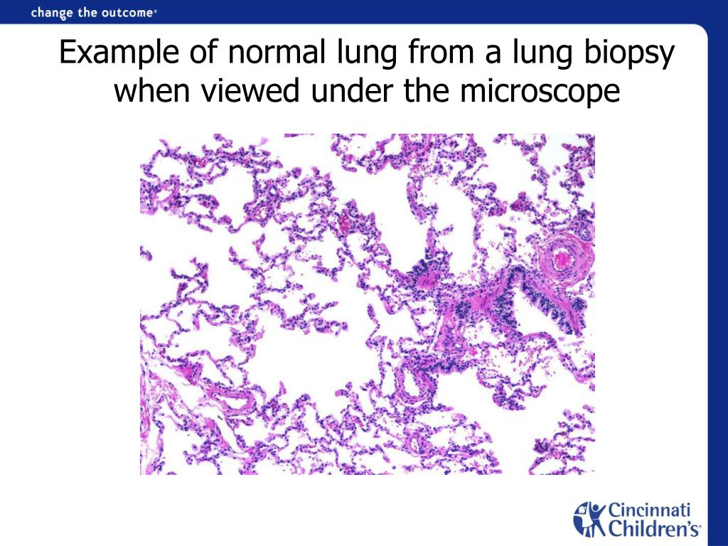 Example of normal lung from a lung biopsy when viewed under the microscope