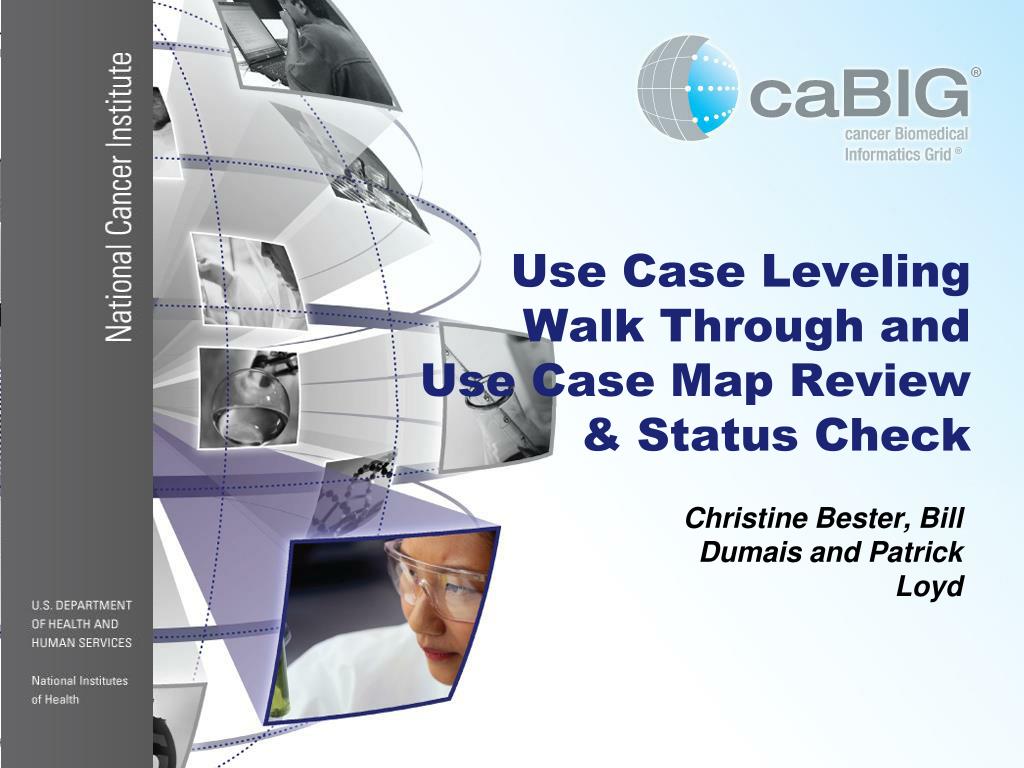 Use Case Leveling Walk Through and Use Case Map Review & Status Check Christine Bester, Bill Dumais and Patrick Loyd