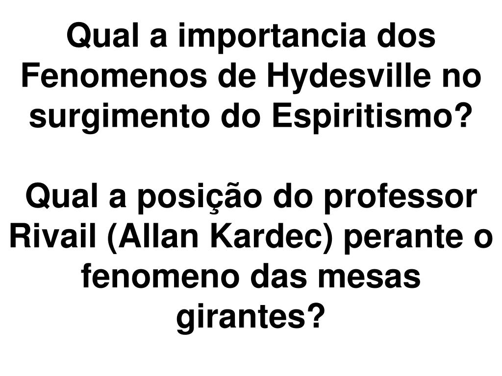 Qual a importancia dos Fenomenos de Hydesville no surgimento do Espiritismo? Qual a posição do professor Rivail (Allan Kardec) perante o fenomeno das mesas girantes?