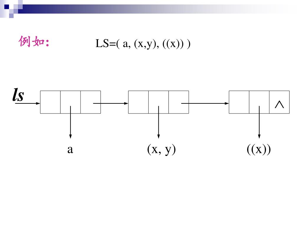例如: LS=( a, (x,y), ((x)) ) ls a (x, y) ((x))