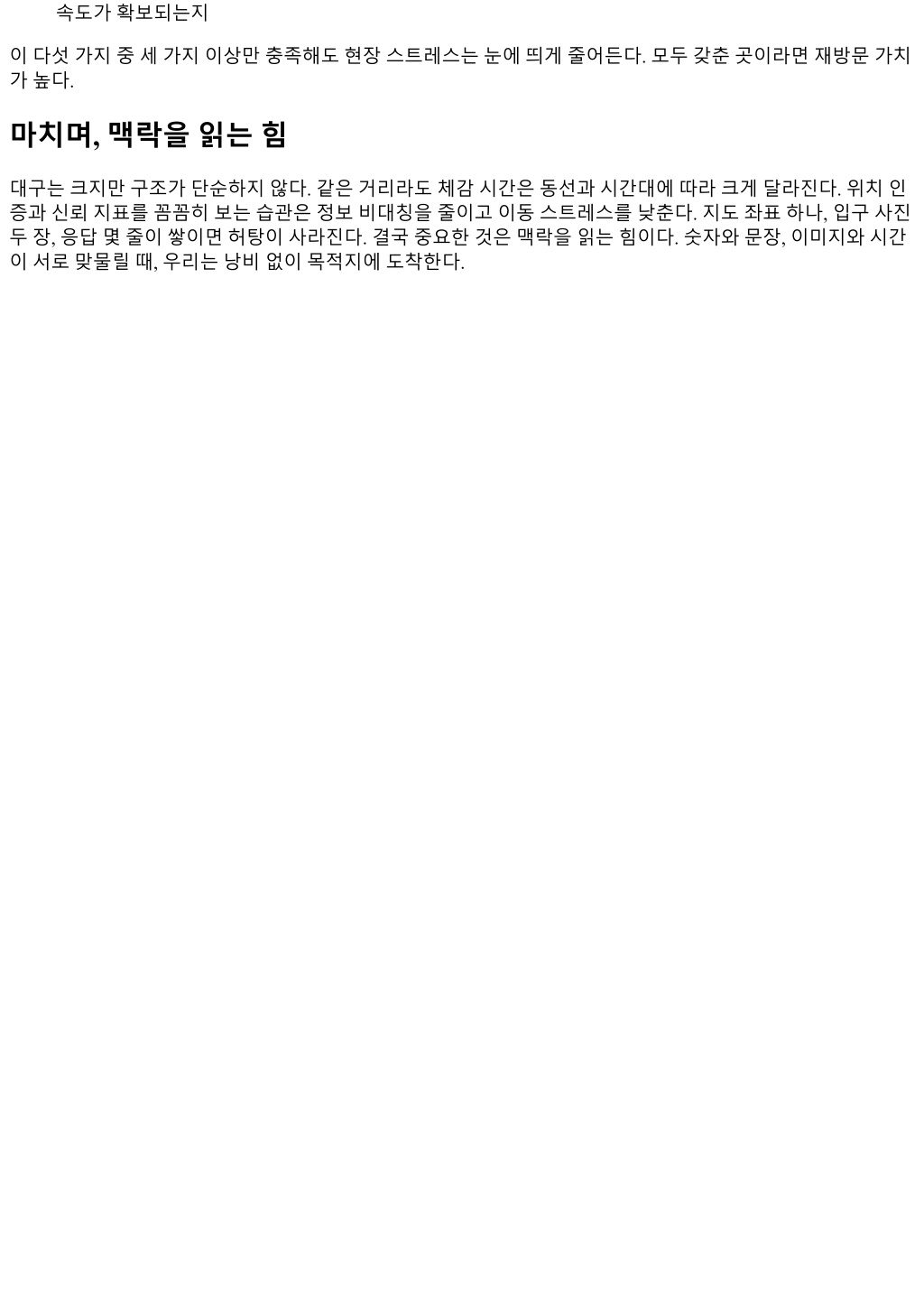 속도가확보되는지 이다섯가지중세가지이상만충족해도현장스트레스는눈에띄게줄어든다. 모두갖춘곳이라면재방문가치 가높다. 마치며, 맥락을읽는힘 대구는크지만구조가단순하지않다. 같은거리라도체감시간은동선과시간대에따라크게달라진다. 위치인 증과신뢰지표를꼼꼼히보는습관은정보비대칭을줄이고이동스트레스를낮춘다. 지도좌표하나, 입구사진 두장, 응답몇줄이쌓이면허탕이사라진다. 결국중요한것은맥락을읽는힘이다. 숫자와문장, 이미지와시간 이서로맞물릴때, 우리는낭비없이목적지에도착한다.
