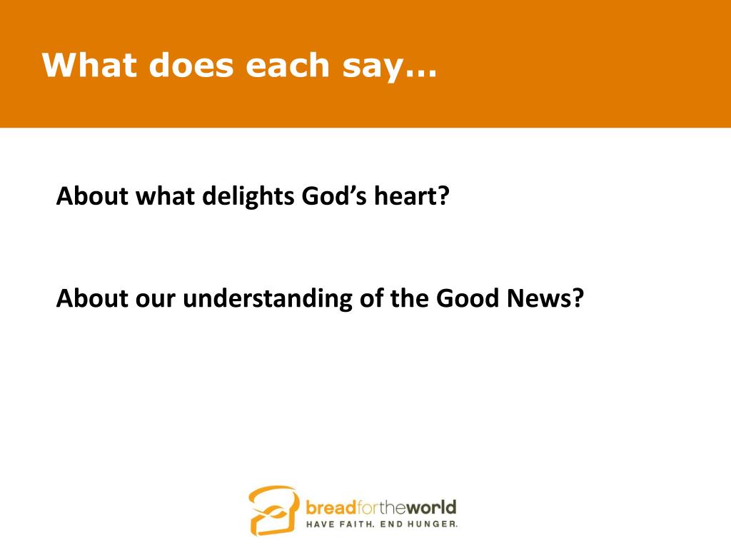 What does each say… About what delights God’s heart? About our understanding of the Good News?
