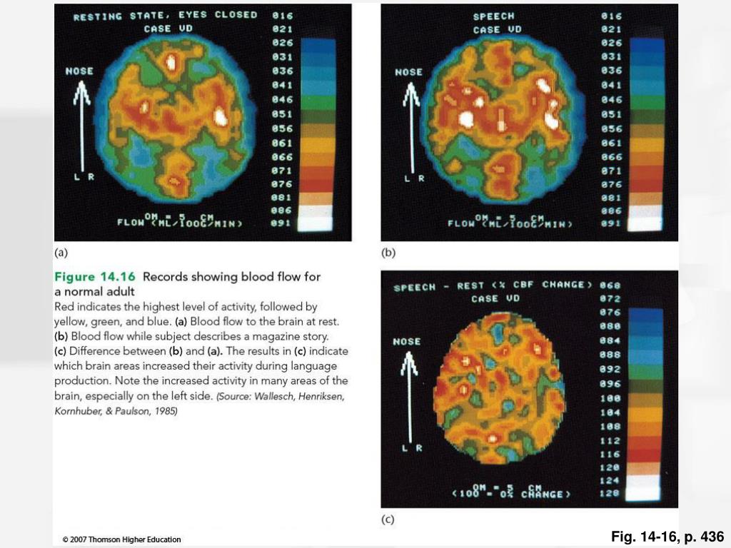 Lateralization of Function • Some anatomical differences exist between the hemispheres of the brain. • The planum temporale is an area of the temporal cortex that is larger in the left hemisphere in 65% of people. • Difference are slightly greater for people who are strongly right handed. • MRI studies indicate that the a big difference in the ratio of left to right planum temporale is related to increased language performance.