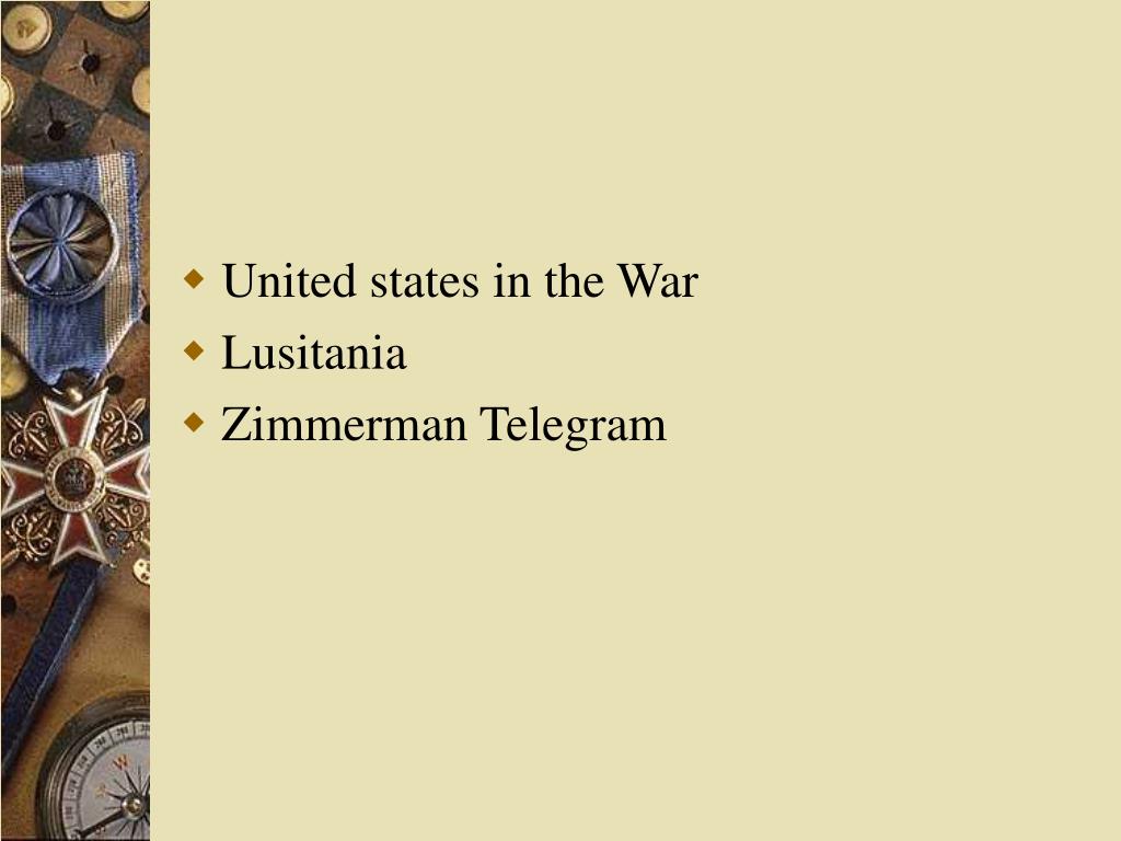 United states in the War • Lusitania • Zimmerman Telegram