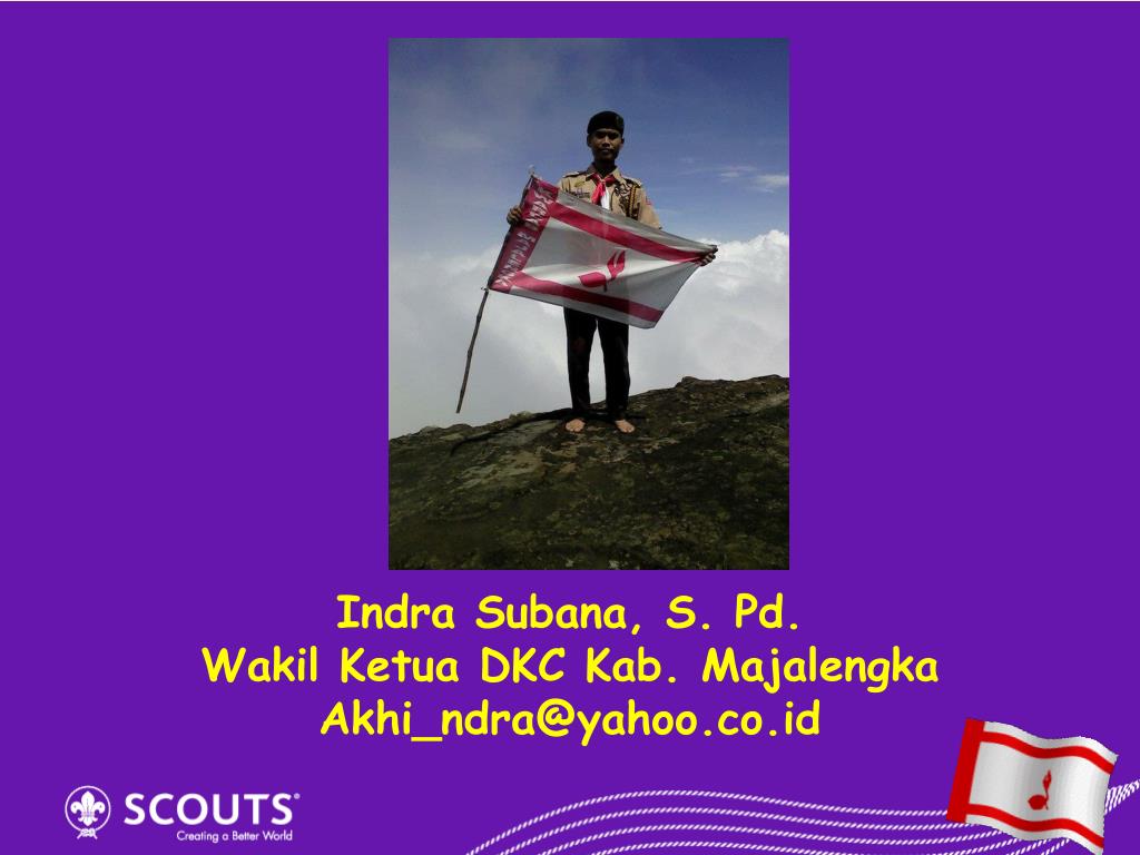 Dewan Kerja Cabang Kabupaten Majalengka ( Ndra Elfatih ) Disampaikan pada : Dianpinsat Wilayah Utara Majalengka 18 Mei 2012. PETUNJUK PENYELENGGARAAN DEWAN KERJA PRAMUKA PENEGAK & PRAMUKA PANDEGA. Indra Subana , S. Pd. Wakil Ketua DKC Kab . Majalengka Akhi_ndra@yahoo.co.id.
