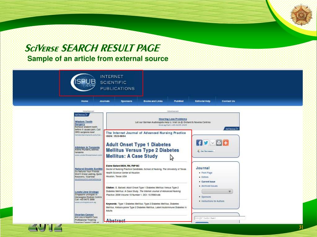 SciVerse SEARCH RESULT PAGE Sample of an article from external source