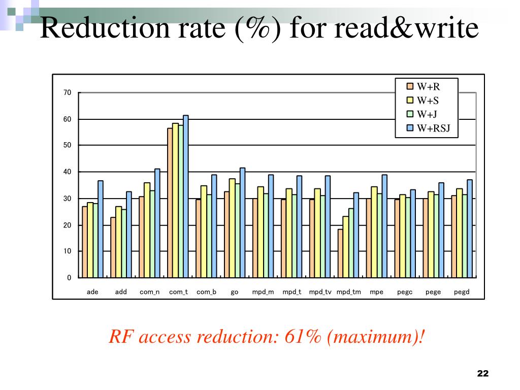 Reduction rate (%) for read&write RF access reduction: 61% (maximum)!