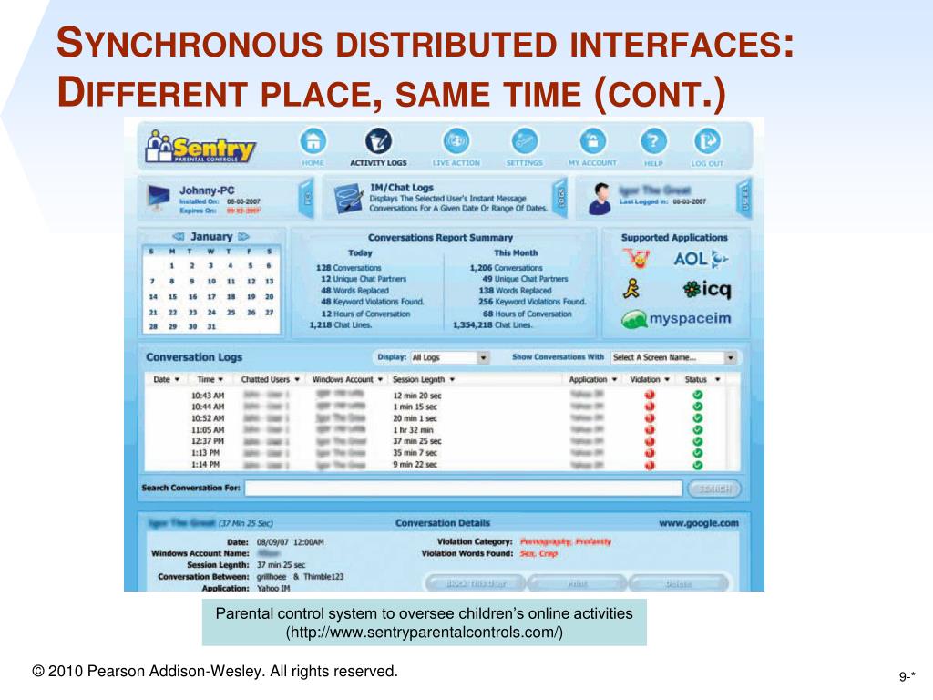 Synchronous distributed interfaces:Different place, same time (cont.) Parental control system to oversee children’s online activities (http://www.sentryparentalcontrols.com/) 9-*
