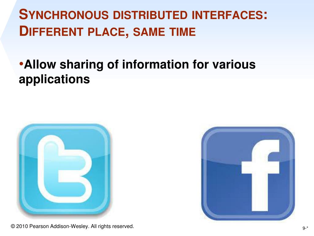 Allow sharing of information for various applications Synchronous distributed interfaces:Different place, same time 9-*
