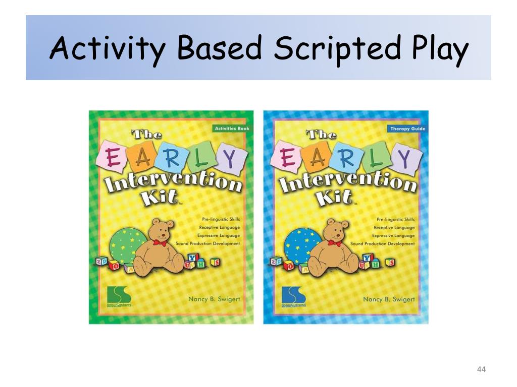 Activity Based Scripted Play:P sound in “Pop the Bubbles” (S5b, p.127) Imitate / Identify environmental noises“Did You Hear That?” (P44, p.32)