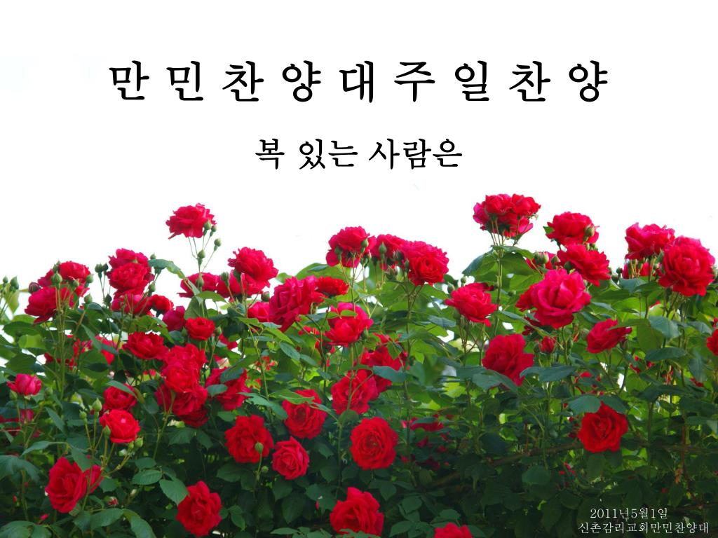 만 민 찬 양 대 주 일 찬 양. 복 있는 사람은. 2011 년 5 월 1 일 신촌감리교회만민찬양 대. 5. 복 있는 사람은 악인의 꾀를 좇지 아니하며 죄인의 길에 서지 아니하며 복 있는 사람은 악인의 꾀를 좇지 아니하며 죄인의 길에 서지 아니하며. 2011 년 5 월 1 일 신촌감리교회만민찬양 대. 죄인의 길에 서지 않으며 오만한 자의 자리에 앉지 아니하고 오직 여호와의 율법을 즐거워하며 그 율법을 주야로 묵상하는 자로다. 2011 년 5 월 1 일 신촌감리교회만민찬양 대.