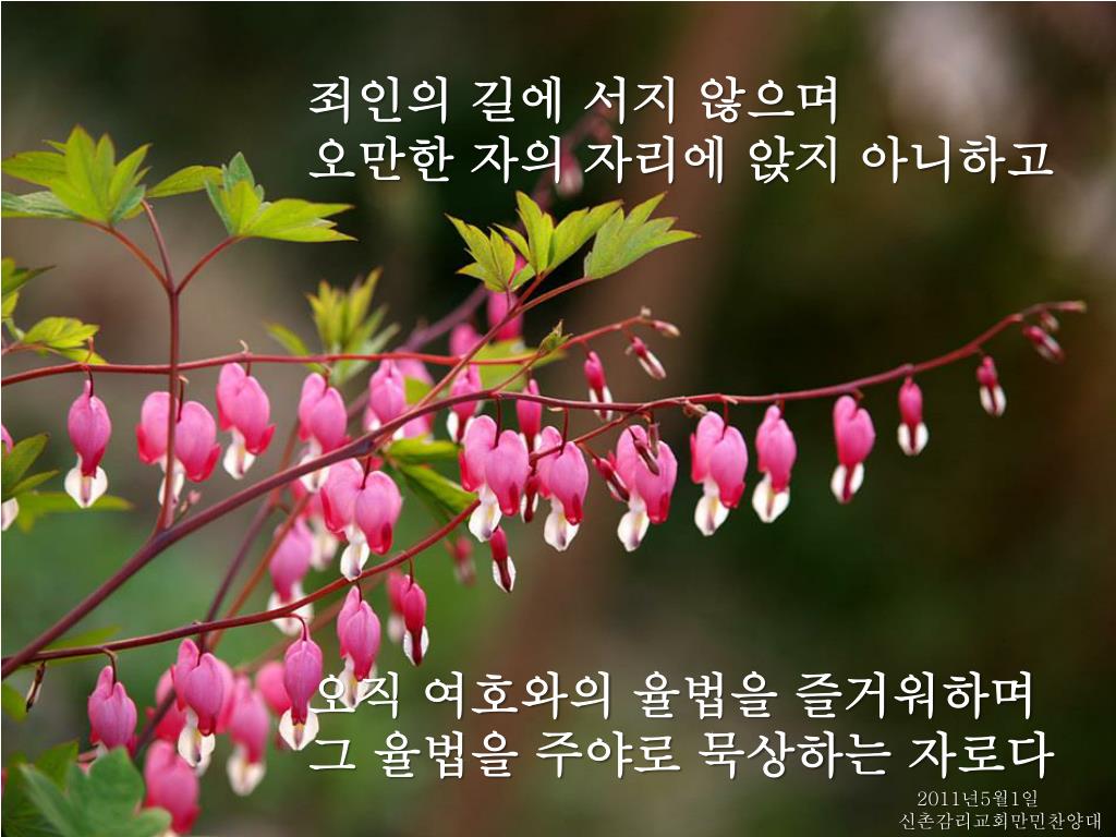 5 복 있는 사람은 악인의 꾀를 좇지 아니하며 죄인의 길에 서지 아니하며 복 있는 사람은 악인의 꾀를 좇지 아니하며 죄인의 길에 서지 아니하며 2011년5월1일 신촌감리교회만민찬양대