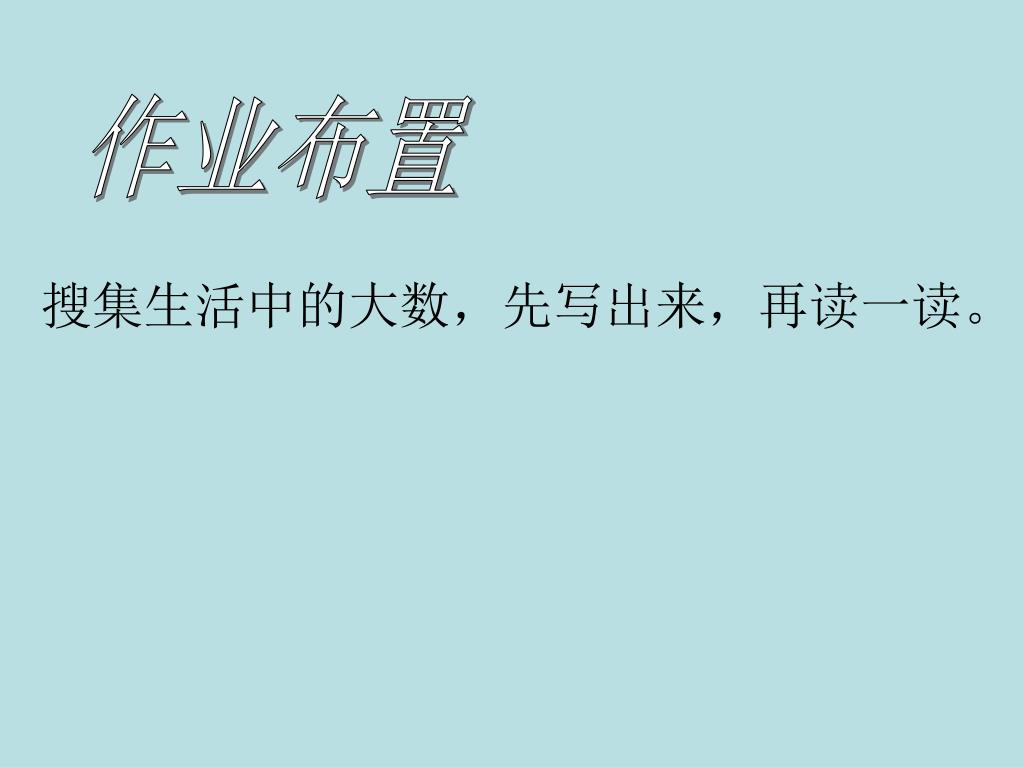 作业布置 搜集生活中的大数,先写出来,再读一读。