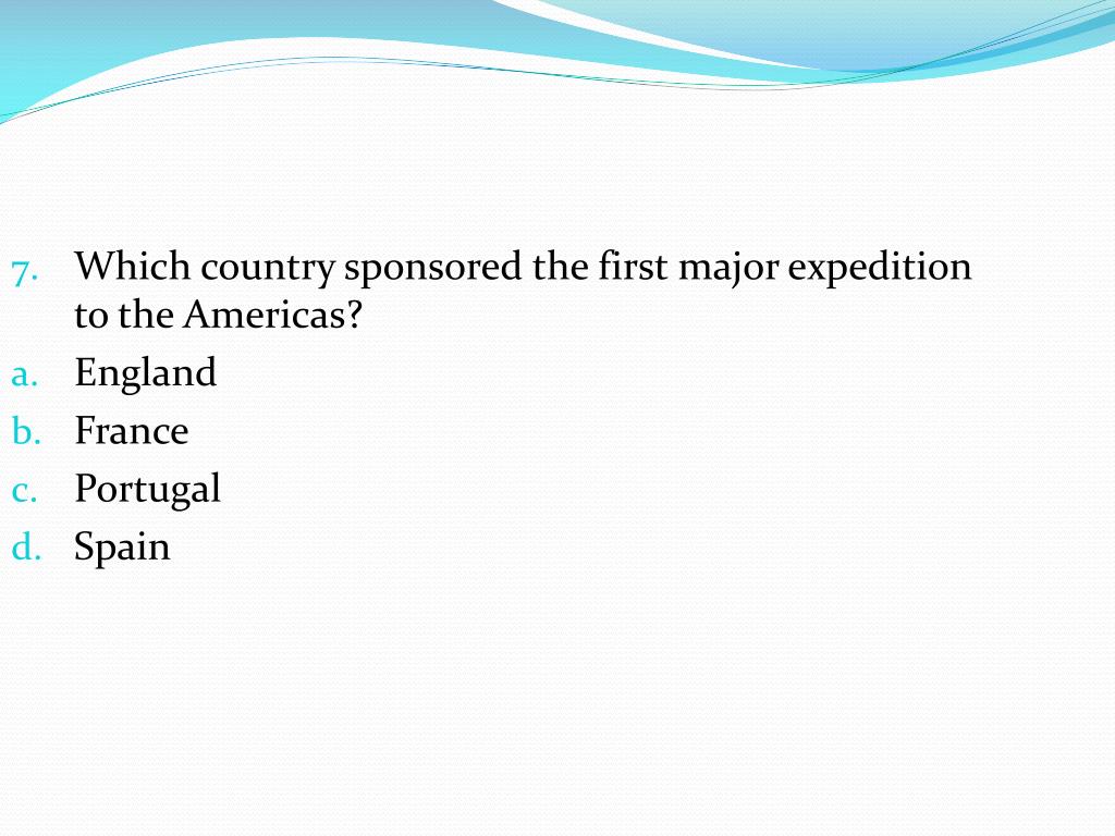 Which country sponsored the first major expedition to the Americas? England France Portugal Spain