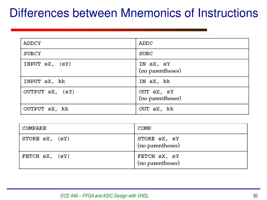 Differences between Mnemonics of Instructions ECE 448 – FPGA and ASIC Design with VHDL