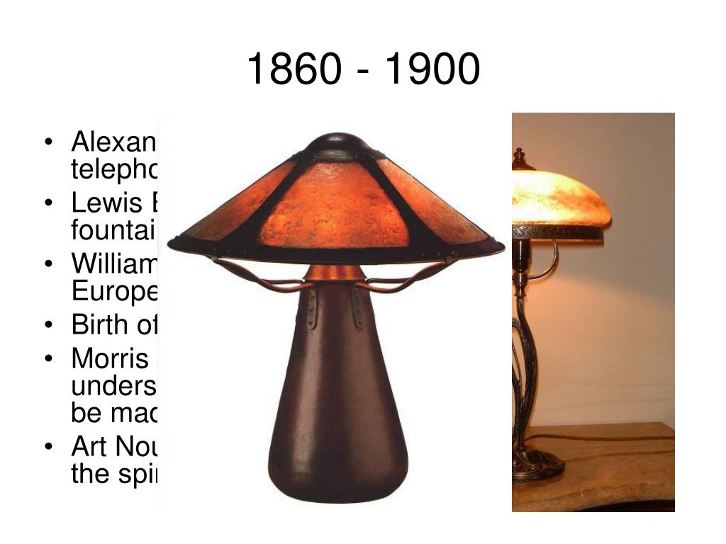 1860 - 1900 • Alexander Graham Bell – invented the telephone in 1876 • Lewis Edson Waterman – designed the first fountain pen (1884) • William Morris – influential craftsman on European Design, critical of mechanisation • Birth of Arts & Crafts Movement • Morris loathed Mass Production but understood its place – he wanted products to be made well. • Art Nouveau (1895 – 1905) – ‘the evocation of the spirit of the plant’ (not popular in Britain)