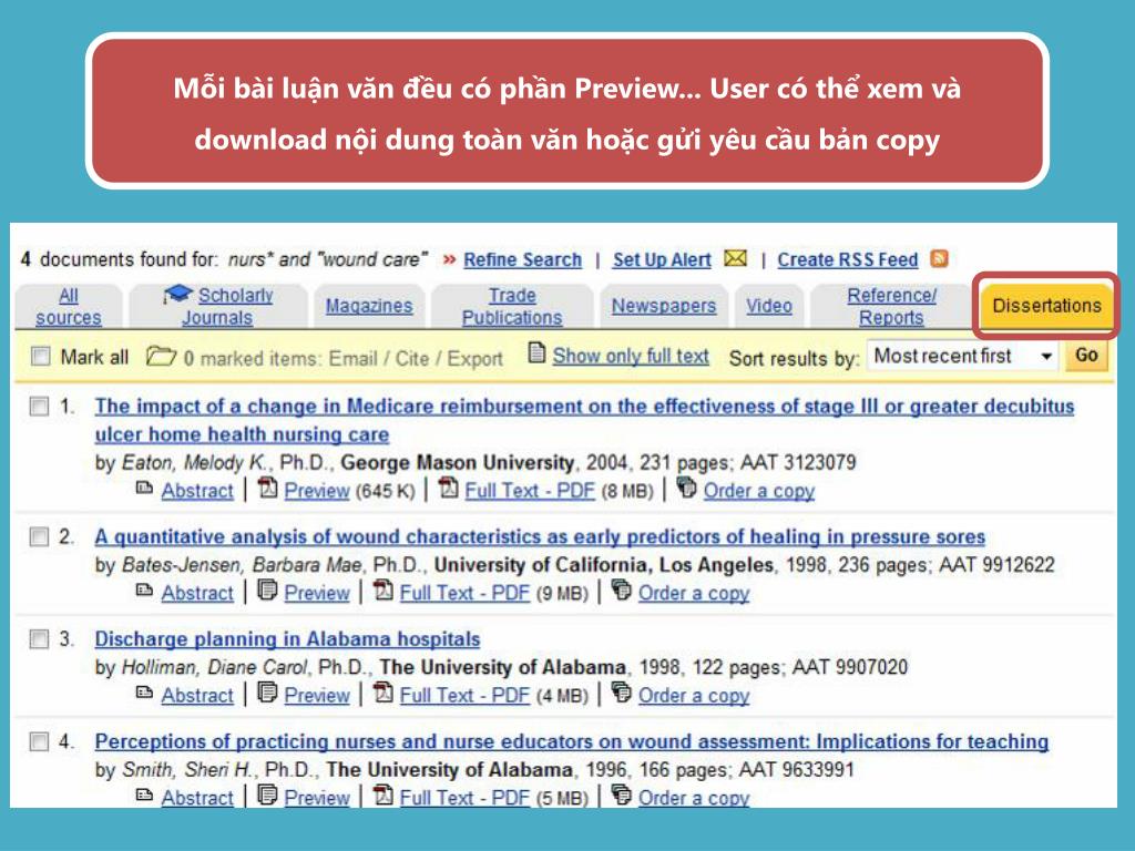 Mỗi bài luận văn đều có phần Preview... User có thể xem và download nội dung toàn văn hoặc gửi yêu cầu bản copy