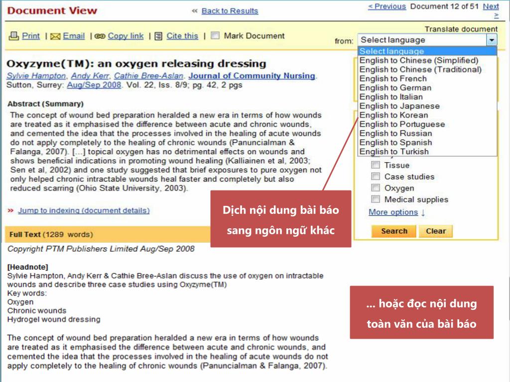 Dịch nội dung bài báo sang ngôn ngữ khác ... hoặc đọc nội dung toàn văn của bài báo