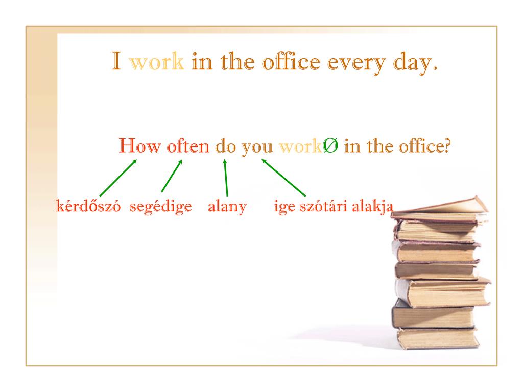 I work in the office every day. How oftendo youworkØin the office? kérdőszó segédige alany ige szótári alakja