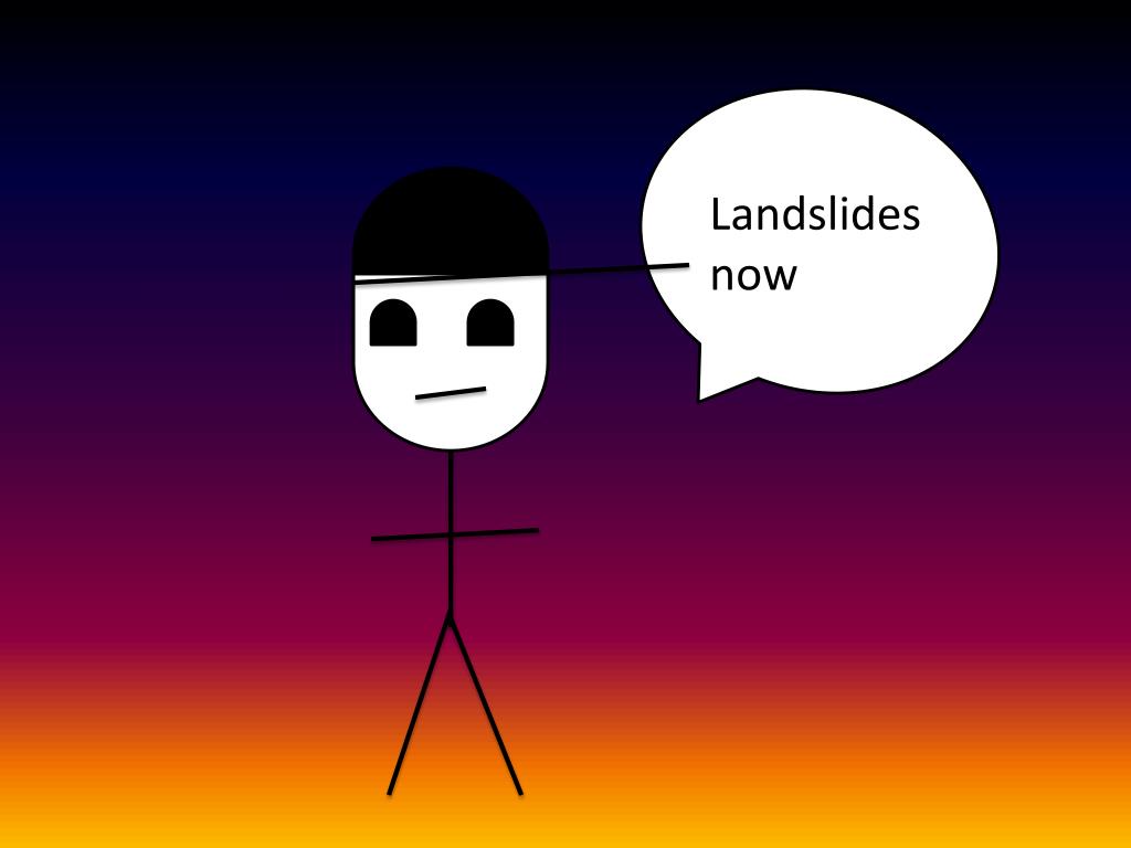 A landslide is when all the soil on a hill loosens slide down and can bury towns and neighbourhoods Landslide