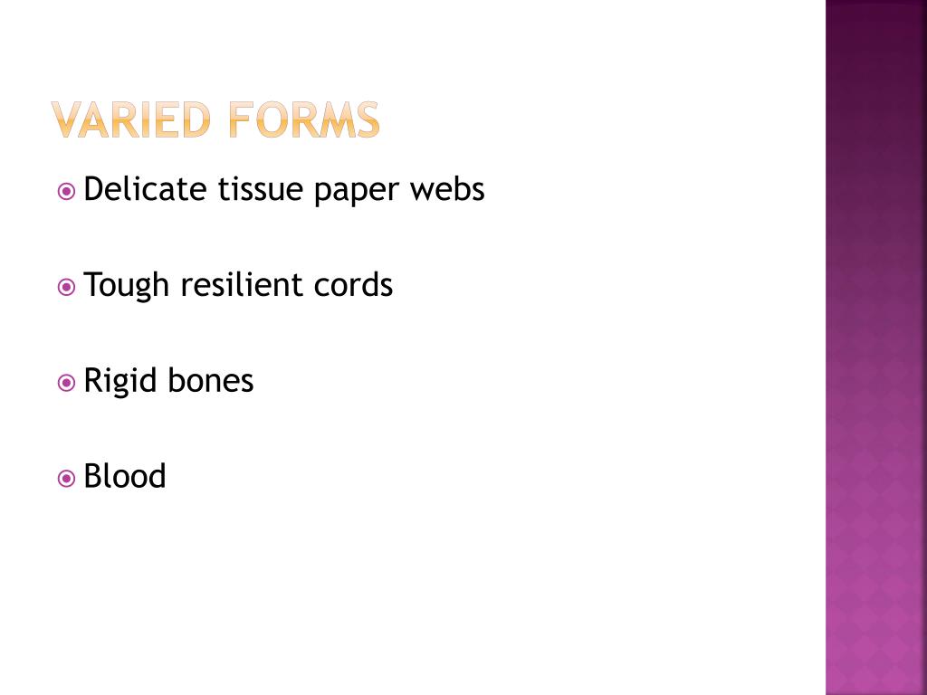 Varied forms • Delicate tissue paper webs • Tough resilient cords • Rigid bones • Blood