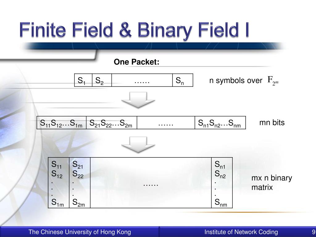Finite Field & Binary Field I One Packet: n symbols over mn bits mx n binary matrix The Chinese University of Hong Kong