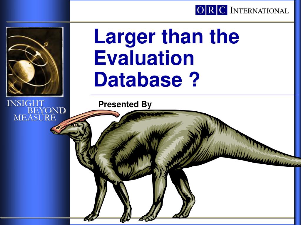 Larger than the Evaluation Database ? Presented By Adrian Hodgson