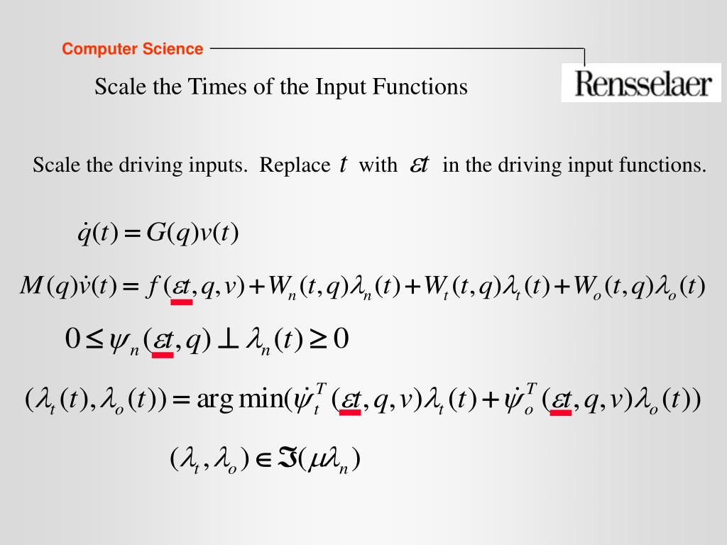 Scale the Times of the Input Functions Scale the driving inputs. Replace with in the driving input functions.