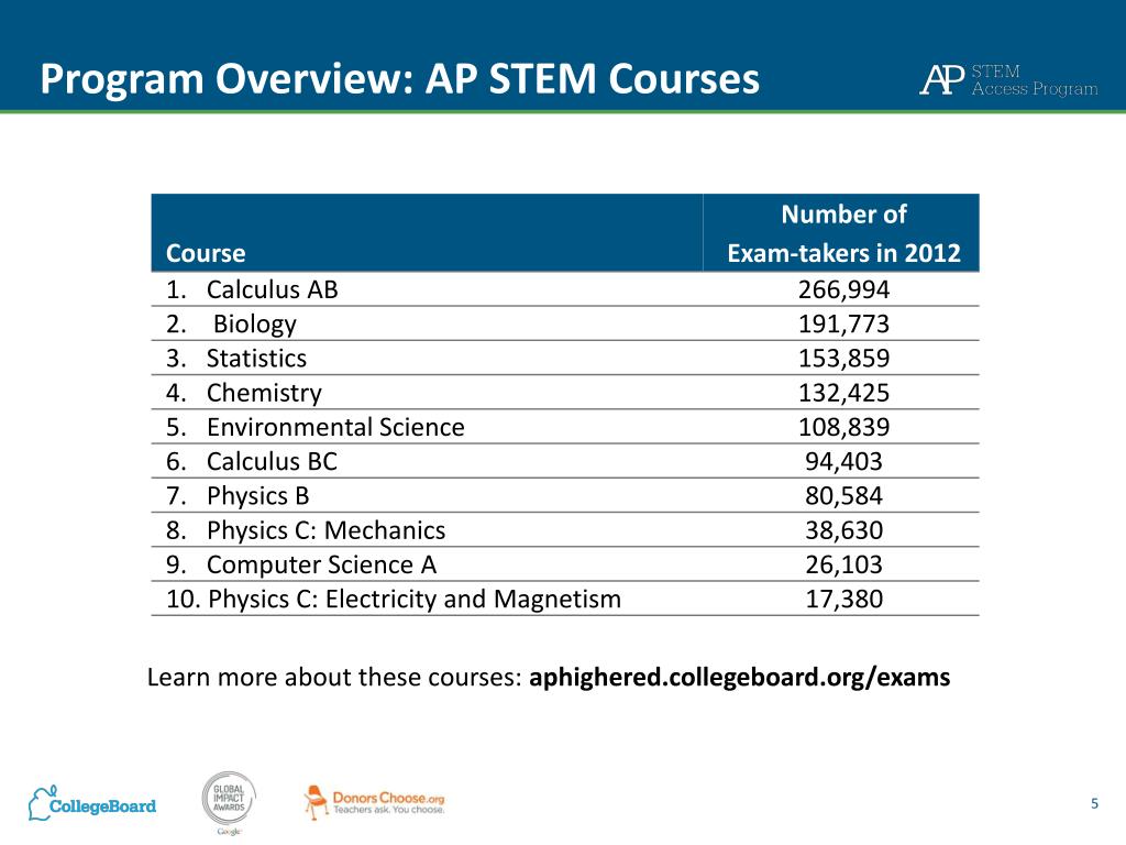Program Overview: AP STEM Courses Learn more about these courses: aphighered.collegeboard.org/exams