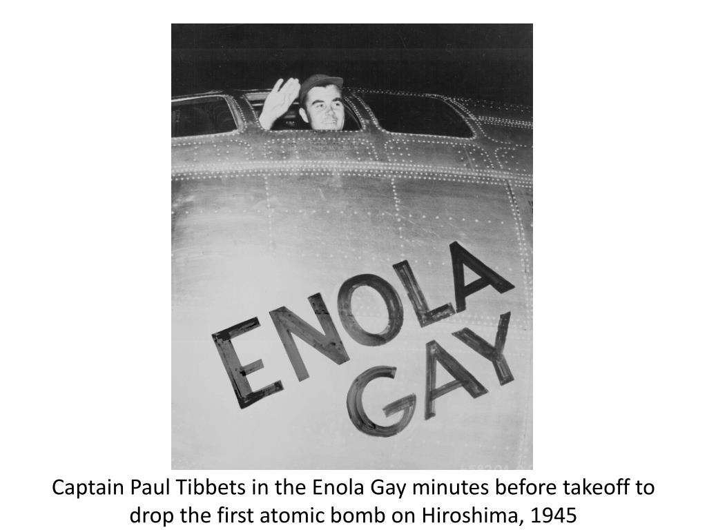 Captain Paul Tibbets in the Enola Gay minutes before takeoff to drop the first atomic bomb on Hiroshima, 1945