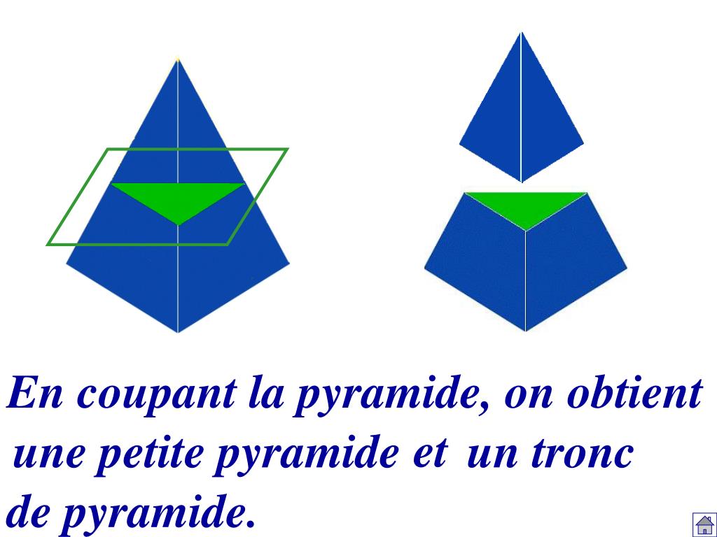 En coupant la pyramide, on obtient et une petite pyramide un tronc de pyramide.