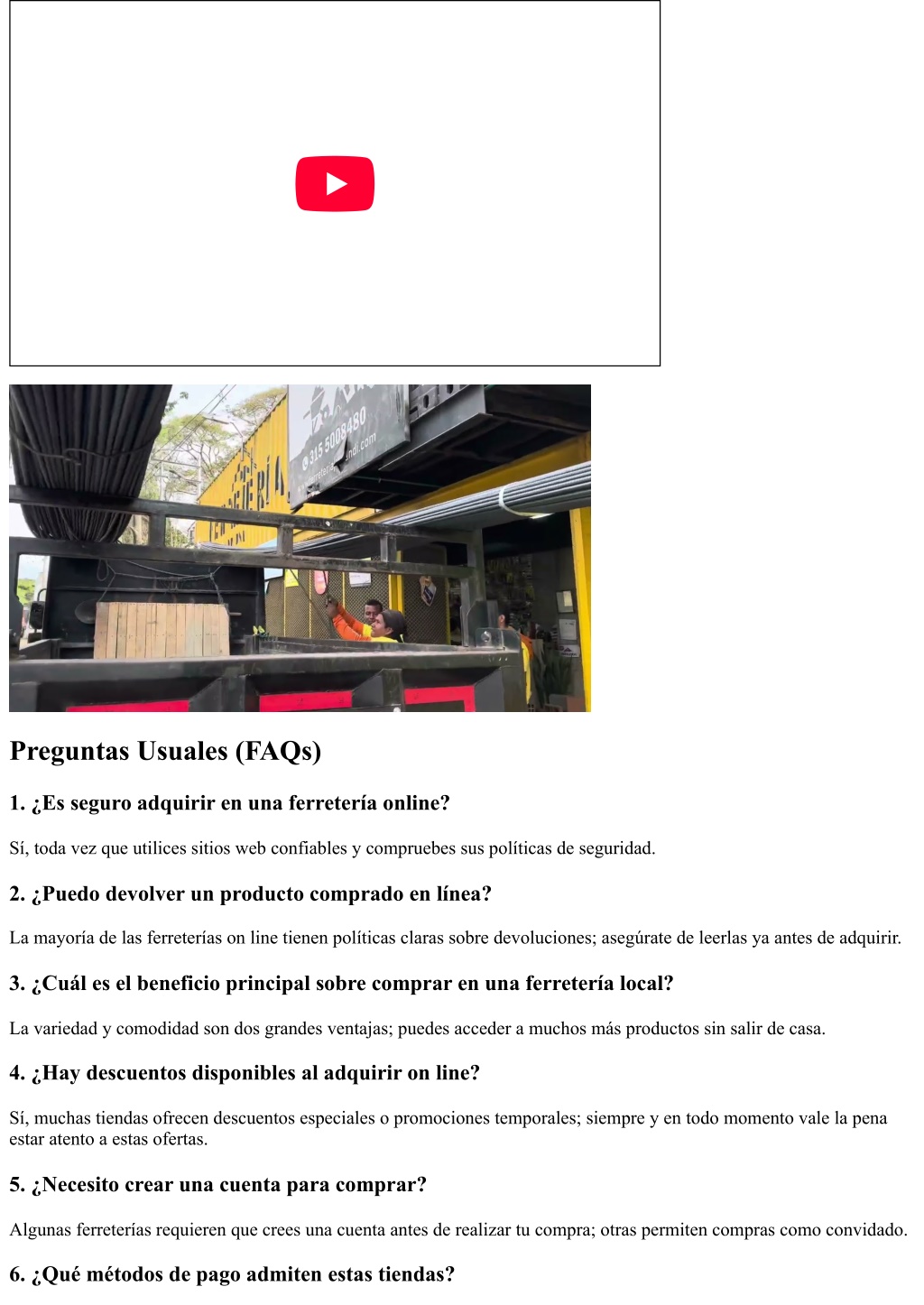 Preguntas Usuales (FAQs) 1. ¿Es seguro adquirir en una ferretería online? Sí, toda vez que utilices sitios web confiables y compruebes sus políticas de seguridad. 2. ¿Puedo devolver un producto comprado en línea? La mayoría de las ferreterías on line tienen políticas claras sobre devoluciones; asegúrate de leerlas ya antes de adquirir. 3. ¿Cuál es el beneficio principal sobre comprar en una ferretería local? La variedad y comodidad son dos grandes ventajas; puedes acceder a muchos más productos sin salir de casa. 4. ¿Hay descuentos disponibles al adquirir on line? Sí, muchas tiendas ofrecen descuentos especiales o promociones temporales; siempre y en todo momento vale la pena estar atento a estas ofertas. 5. ¿Necesito crear una cuenta para comprar? Algunas ferreterías requieren que crees una cuenta antes de realizar tu compra; otras permiten compras como convidado. 6. ¿Qué métodos de pago admiten estas tiendas?