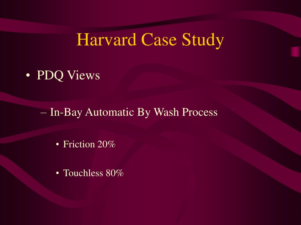 Harvard Case Study • PDQ Views • In-Bay Automatic By Wash Process • Friction 20% • Touchless 80%