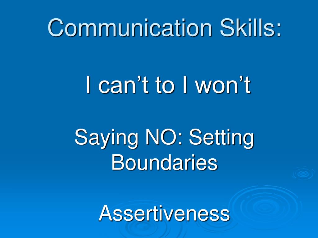 Communication Skills:I can’t to I won’tSaying NO: Setting BoundariesAssertiveness