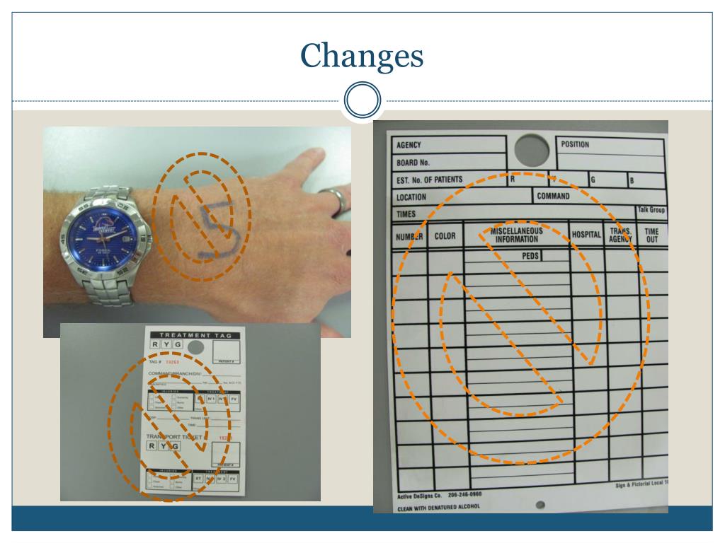 MCI Changes at a glance Develop “Rescue Group” to move patients Eliminate formal funnel point Eliminate use of treatment tags Elimination of patient numbering (felt pen) NIMS Terms: Hospital Control is now Disaster Medical Control Center (DMCC)