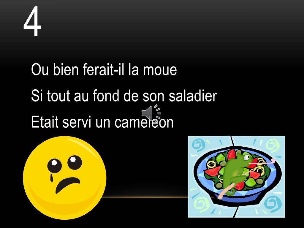 4 Oubienferait-il la moue Si tout au fond de son saladier Etaitservi un cameleon