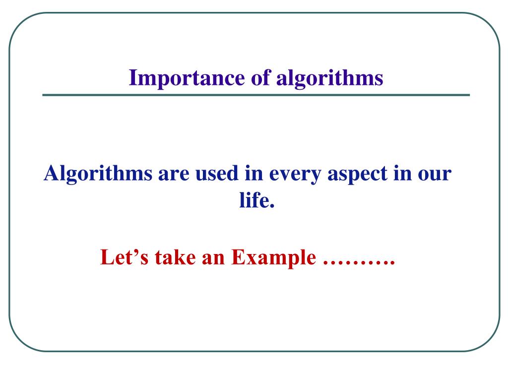 Algorithms are used in every aspect in our life. Let’s take an Example ………. Importance of algorithms