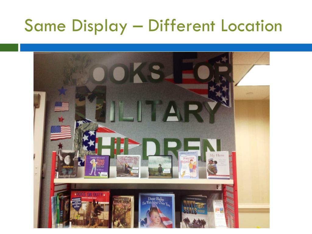 Identifying the Group • Don’t need to identify individuals in your community before offering programs • Live anywhere – not just military installations • Active Duty = full time job • National Guard and Reserves = part time until “Activated” • Veterans, Retirees and DOD civilians • Many don’t know these books exist
