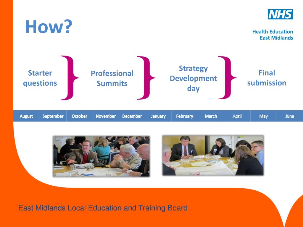 How? Strategy Development day Final submission Starter questions Professional Summits