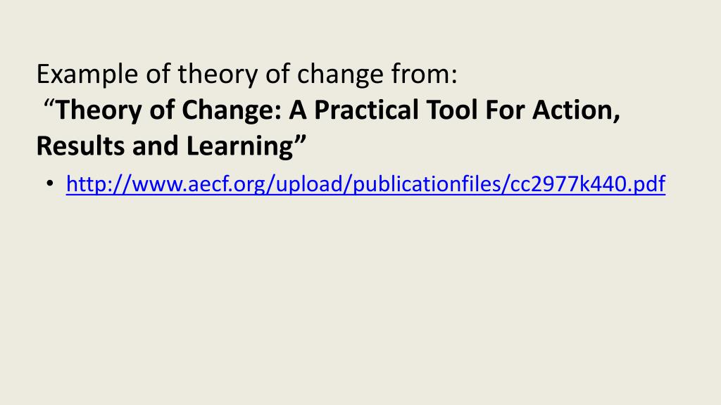 Example of theory of change from: “Theory of Change: A Practical Tool For Action, Results and Learning” • http://www.aecf.org/upload/publicationfiles/cc2977k440.pdf