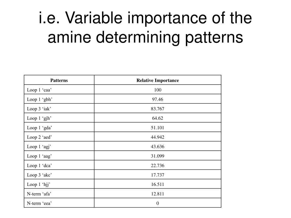 CART RESULTS The classification table showing the only patterns determining amines from all others