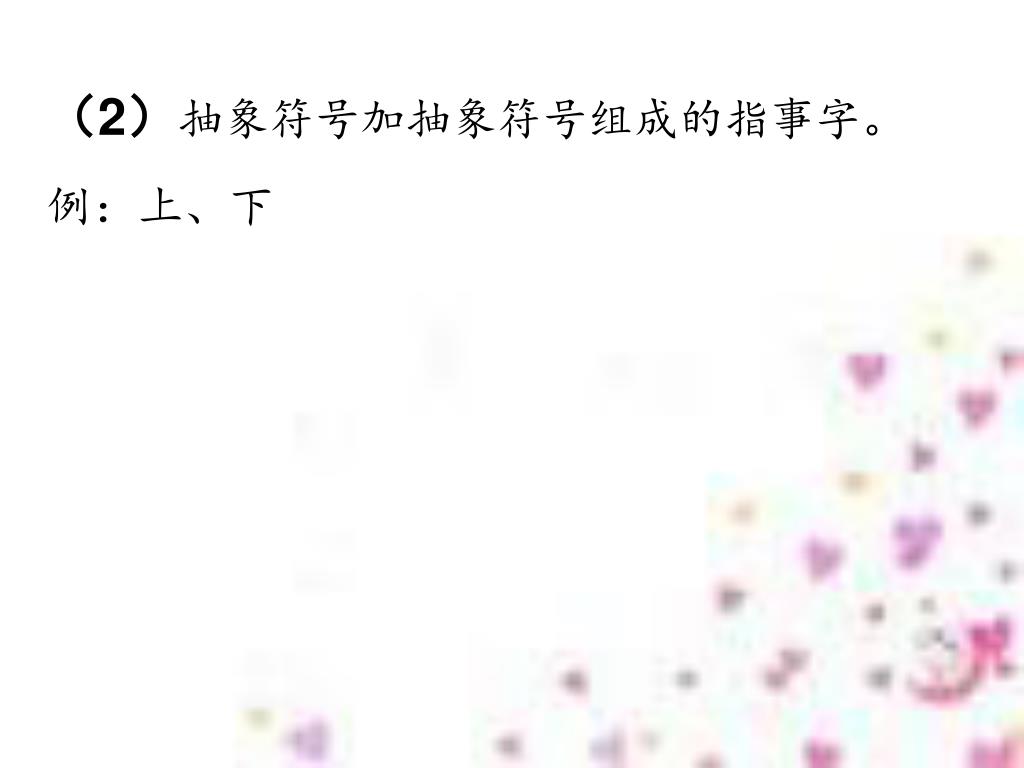 (2)抽象符号加抽象符号组成的指事字。 例:上、下