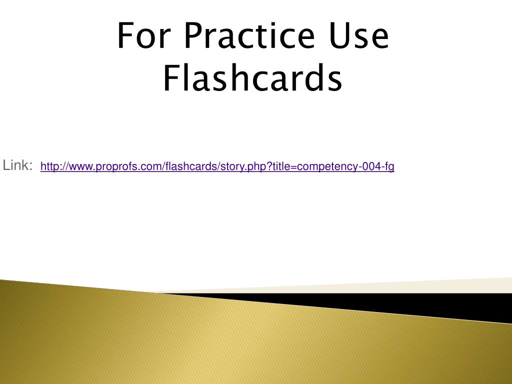 For Practice Use Flashcards Link: http://www.proprofs.com/flashcards/story.php?title=competency-004-fg