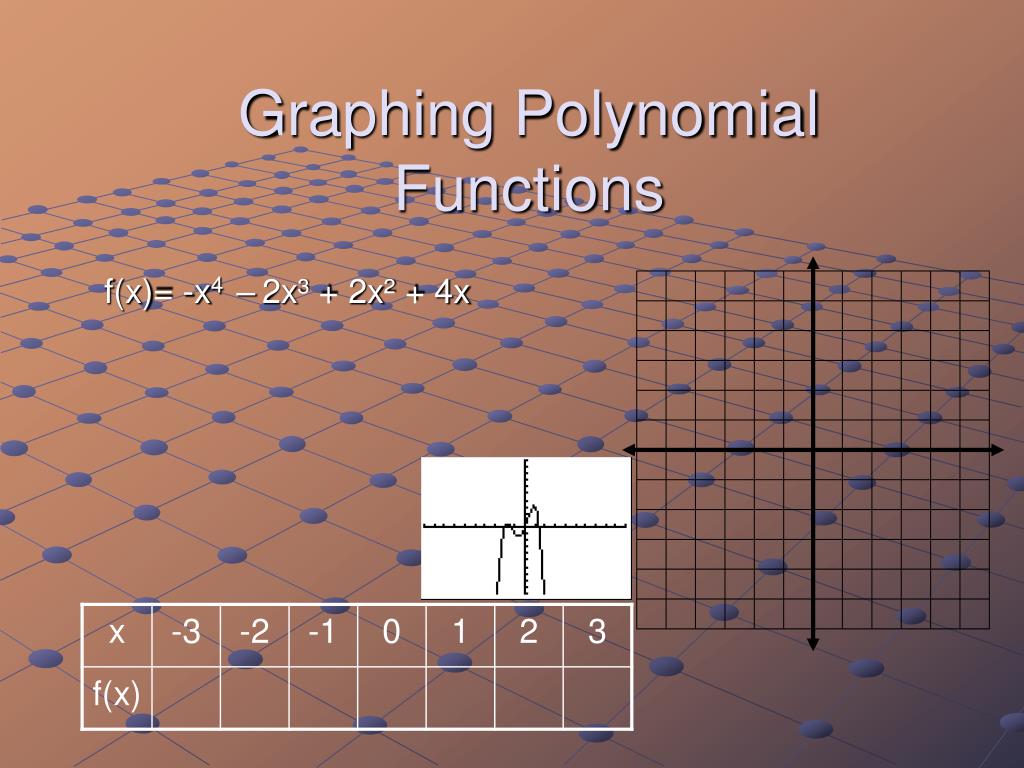 Graphing Polynomial Functions f(x)= -x4 –2x³ + 2x² + 4x