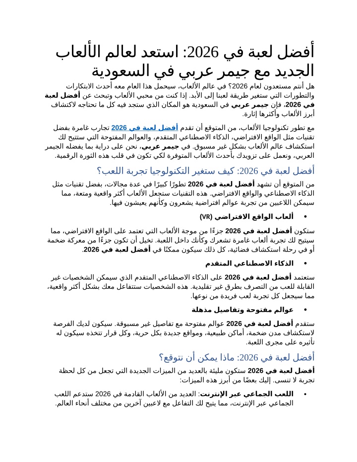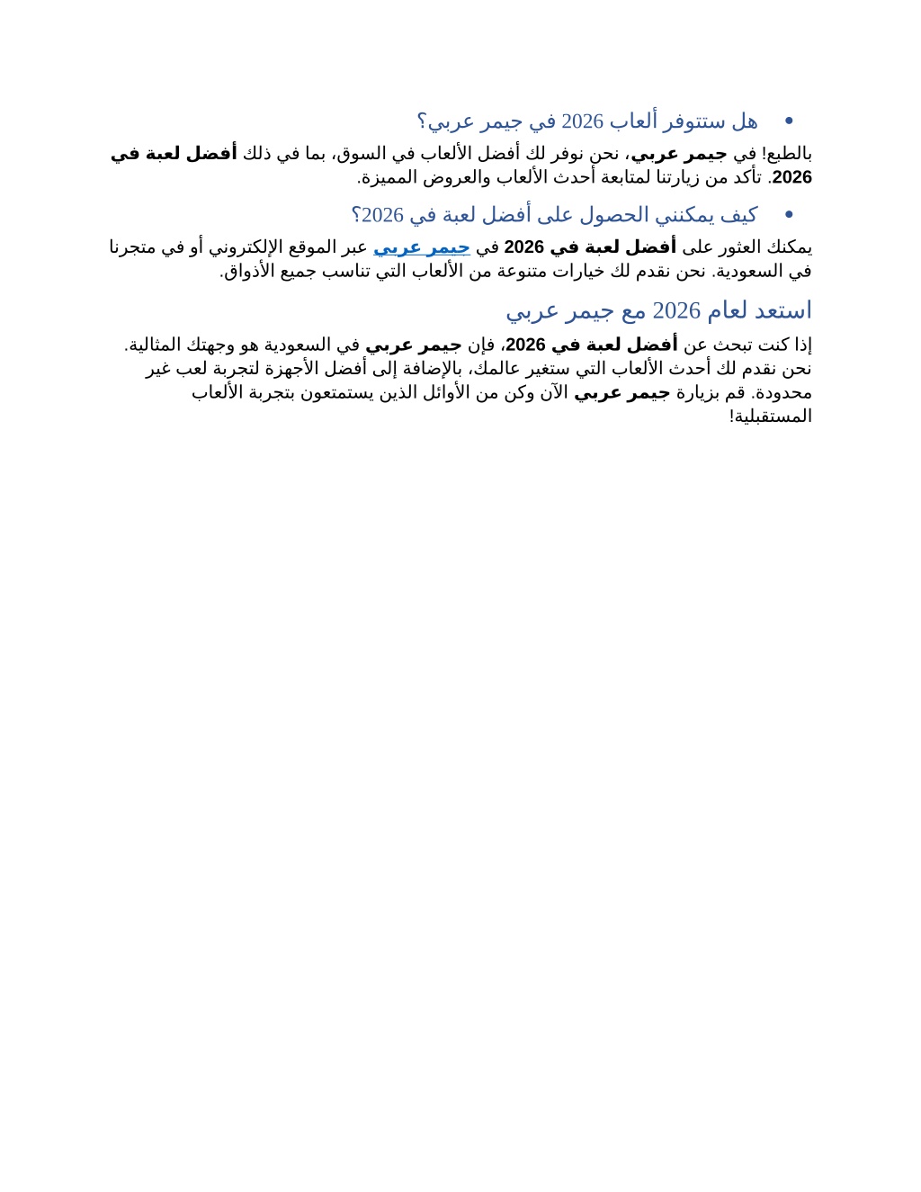 u0647u0644 u0623u0646u062au0645 u0645u0633u062au0639u062fu0648u0646 u0644u0639u0627u0645 2026u061f u0641u064a u0639u0627u0644u0645 u0627u0644u0623u0644u0639u0627u0628u060c u0633u064au062du0645u0644 u0647u0630u0627 u0627u0644u0639u0627u0645 u0645u0639u0647 u0623u062du062fu062b u0627u0644u0627u0628u062au0643u0627u0631u0627u062a u0648u0627u0644u062au0637u0648u0631u0627u062a u0627u0644u062au064a u0633u062au063au064au0631 u0637u0631u064au0642u0629 u0644u0639u0628u0646u0627 u0625u0644u0649 u0627u0644u0623u0628u062f. u0625u0630u0627 u0643u0646u062a u0645u0646 u0645u062du0628u064a u0627u0644u0623u0644u0639u0627u0628 u0648u062au0628u062du062b u0639u0646 u0623u0641u0636u0644 u0644u0639u0628u0629 u0641u064a 2026u060c u0641u0625u0646 u062cu064au0645u0631 u0639u0631u0628u064a u0641u064a u0627u0644u0633u0639u0648u062fu064au0629 u0647u0648 u0627u0644u0645u0643u0627u0646 u0627u0644u0630u064a u0633u062au062cu062f u0641u064au0647 u0643u0644 u0645u0627 u062au062du062au0627u062cu0647 u0644u0627u0643u062au0634u0627u0641 u0623u0628u0631u0632 u0627u0644u0623u0644u0639u0627u0628 u0648u0623u0643u062bu0631u0647u0627 u0625u062bu0627u0631u0629.
