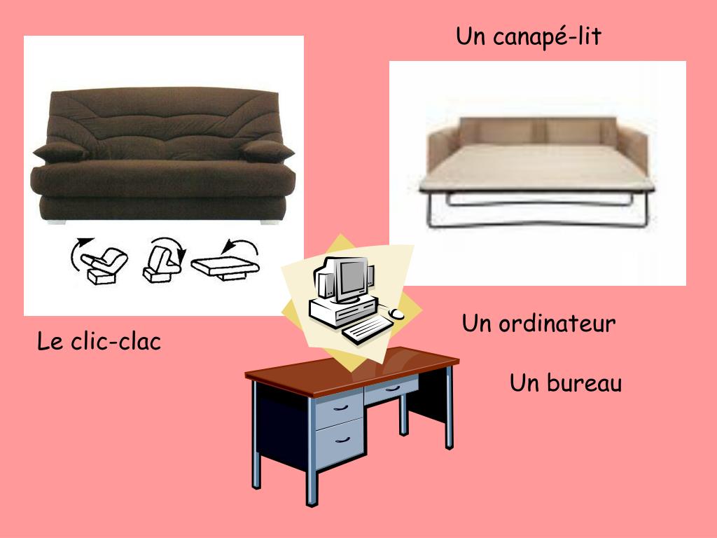 Un canapé-lit Un ordinateur Le clic-clac Un bureau