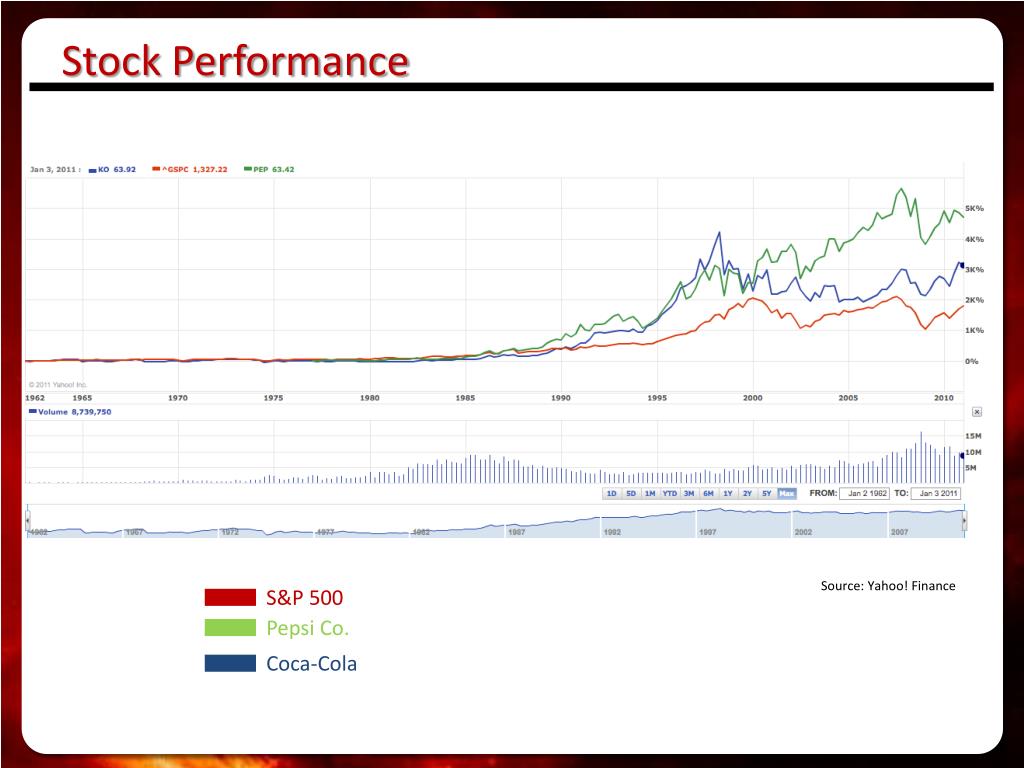 Stock Performance Source: Yahoo! Finance S&P 500 Pepsi Co. Coca-Cola