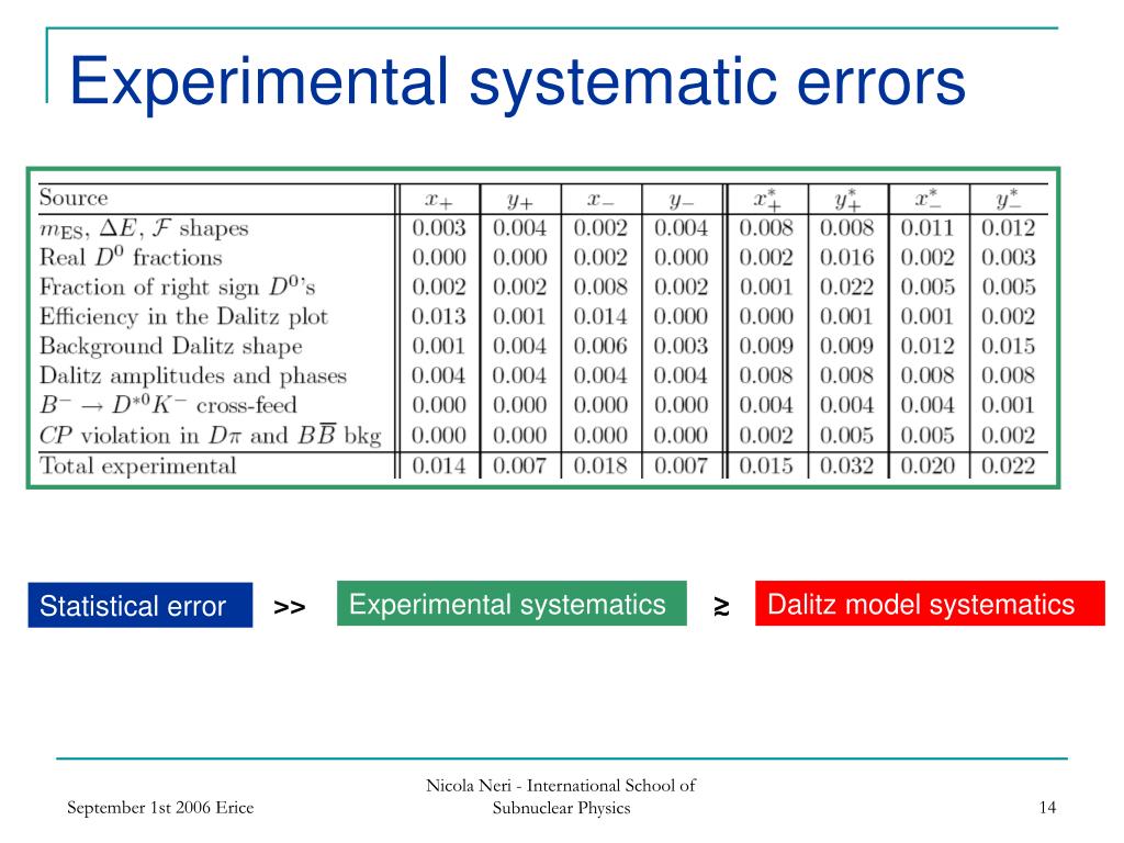 Experimental systematic errors >> Experimental systematics Dalitz model systematics Statistical error ≳ Nicola Neri - International School of Subnuclear Physics