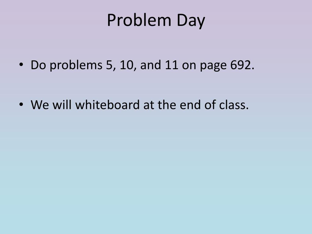 Problem Day • Do problems 5, 10, and 11 on page 692. • We will whiteboard at the end of class.
