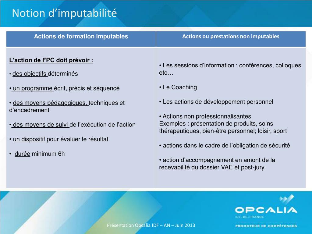 Notion d’imputabilité Présentation Opcalia IDF – AN – Juin 2013
